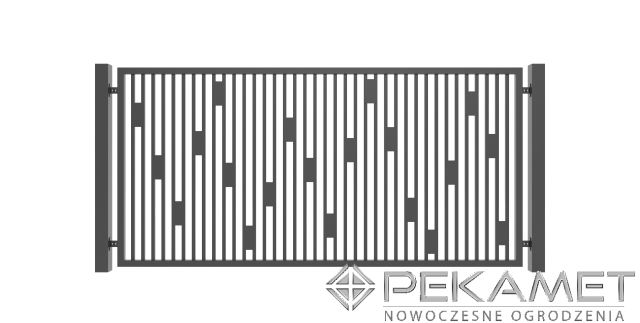 Model P.10.01 – Ogrodzenie stalowe z profilami 20x20 mm, w rozstawie ok 60mm oraz z wstawkami z blachy
